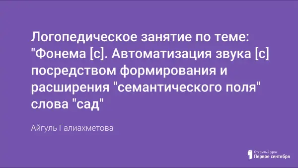 Цели урока: формирование и расширение "семантического поля", развитие валентностей слов; автоматизация звука [с] в словах, предложениях через формирование "семантического поля" (комплекс ассоциаций, возникающих вокруг одного слова); развитие мелкой моторики, общей моторики; развитие фонематического слуха и восприятия; развитие психических процессов: внимания, памяти, воображения, мышления; уточнение, расширение словаря через формирование семантического поля слова "сад" и развитие валентностей слов; развитие функции словоизменения; развитие связной речи.
