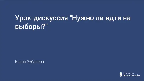 Урок-дискуссия "Нужно ли идти на выборы?" проходил накануне выборов в V Государственную думу. Учащиеся 11-го класса ознакомились с избирательным законодательством, изучили принципы избирательного права в демократическом обществе, права избирателей; сформировали представление о роли различных участников избирательного процесса. Актуальность поставленной проблемы заключается в том, что активность граждан на выборах неуклонно снижается. "Нужно ли идти на выборы?" – этот вопрос стал предметом дискуссии старшеклассников, организованной с использованием различных технологий. Отношение к рассматриваемой проблеме учащиеся высказали в форме синквейна - "стихотворения", состоящего из пяти строк, выбрав ключевыми слова "выборы", "избиратель".