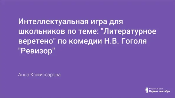 Как привлечь внимание учащихся к чтению классической литературы? Как вызвать желание к саморазвитию, самообразованию, познанию вечных истин? Как заинтересовать ребят на своих уроках? Путей развития интереса много. Один из них - использование занимательности, игр и игровых моментов на уроках. Статья содержит сценарий интеллектуальной игры для учащихся 8-х классов "Литературное веретено" по комедии Н.В. Гоголя "Ревизор".