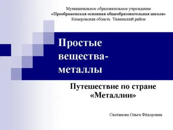 Урок разработан для 8-го класса на основе программы О.С. Габриеляна с использованием средств ИКТ. Цели урока – сформировать представление у школьников о металлах и их физических свойствах, продолжить работу по развитию познавательной активности учеников, выработать умения и навыки наблюдать, делать выводы. Урок производится в форме игры-путешествия, что облегчает усвоение материала.