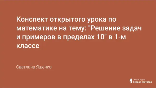 На уроке математики в 1-м классе учащиеся учатся решать задачи разного вида и подбирать к ним схемы, решать примеры, закреплять знания о составе числа. Вычисления ведутся в пределах 10.