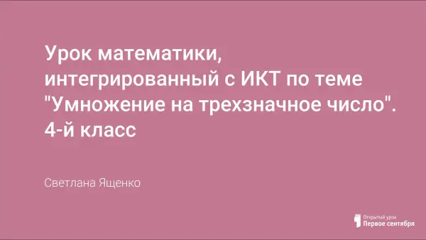 Цели урока: познакомиться с примерами умножения многозначного числа на трёхзначное, развивать навык устного счёта, логическое мышление, математическую смекалку; воспитывать любовь к математике, природе, ко всему живому.