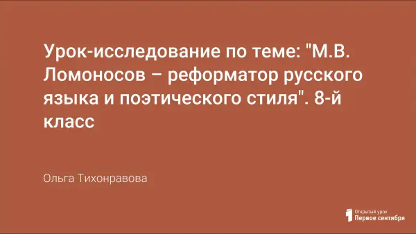 Представлен конспект урока-исследования по литературе в 8-м классе, который рассказывает о М.В. Ломоносове.