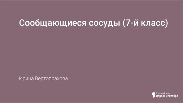 На уроке учащиеся знакомятся с сообщающимися сосудами, узнают закон сообщающихся сосудов для однородных и неоднородных жидкостей, а также рассматривают применение сообщающихся сосудов на практике.
