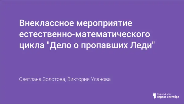 Внеклассное мероприятие естественно-математического цикла "Дело о пропавших Леди"