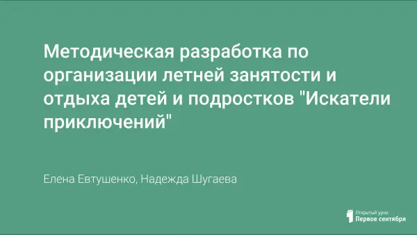 Методическая разработка по организации летней занятости и отдыха детей и подростков "Искатели приключений"