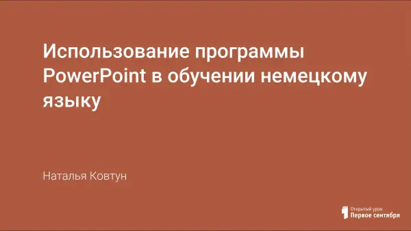 Компьютерная программа Power Point может эффективно использоваться на уроке иностранного языка в осуществлении наглядной поддержки обучения речи. В статье приводится пример использования презентации PowerPoint на уроке немецкого языка в 10-м классе.
