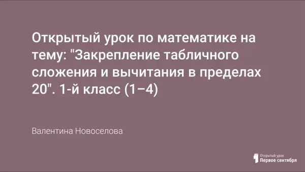 Урок математики в 1-м классе (1–4) закрепляет навык табличного сложения и вычитания в пределах 20, решения текстовых задач, решения геометрических задач, развивает наблюдательность, умение рассуждать, сравнивать, воспитывает интерес к математике.