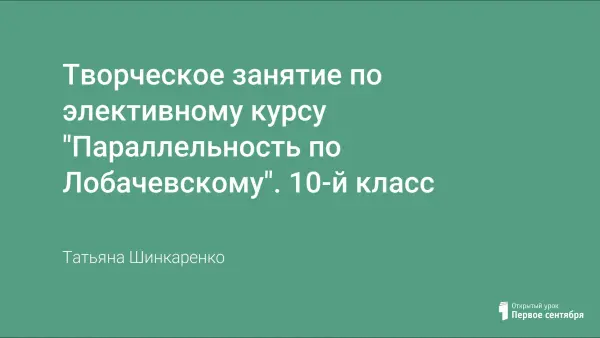 Представленный материал дает возможность более широко рассмотреть понятие параллельности в пространстве, знакомит учащихся с параллельностью по Лобачевскому, с поэтическим творчеством, которое посвящается великому ученому, развивает познавательный интерес к математике и научное мировоззрение.