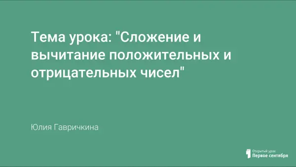 На изучение данной темы отводится 11 часов. Это девятый урок по теме. Учащиеся уже умеют складывать и вычитать положительные и отрицательные числа без опоры на правило.