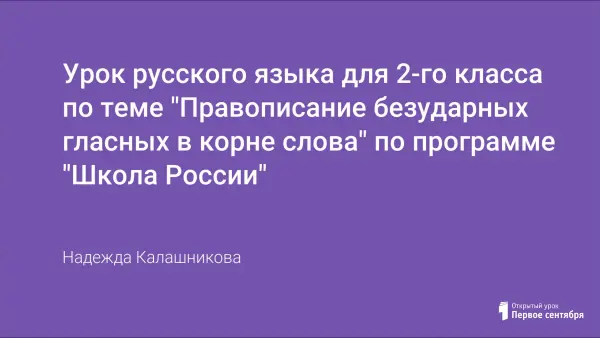 Урок направлен на формирование представления у учащихся о способах проверки безударных гласных в корне слова. Грамотно построенный урок должен быть последователен в системе уроков. Весь материал внутри урока должен плавно переходить от одного этапа к другому. Это позволит снизить утомляемость учащихся и повысить эффективность урока, поддержать интерес к предмету.