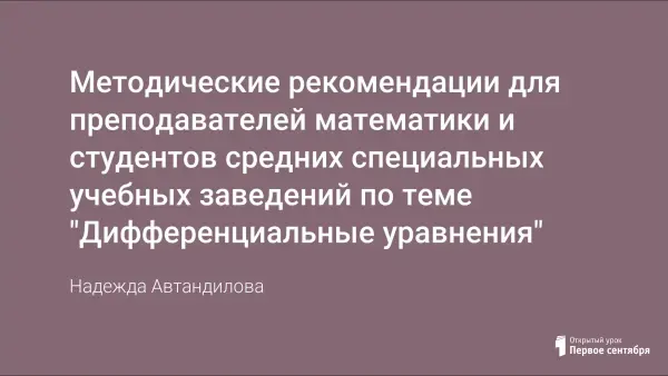Данные методические рекомендации предназначены для преподавателей математики в техникумах, а также для студентов второго курса всех специальностей. В работе излагаются основные понятия дифференциальных уравнений, методы решения этих уравнений. Теоретический курс дополнен примерами и практическими заданиями.