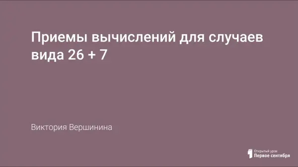 Урок по теме "Приёмы вычислений для случаев вида 26+7" направлен на способность самостоятельно вывести правило сложения для случаев вида 26+7; умение рассуждать, делать выводы, опираясь на ранее полученные знания.