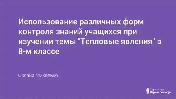 Предлагаю различные формы организации контроля знаний учащихся 8-х классов по теме "Тепловые явления": физические диктанты, схемы теплообмена, графические задачи, составление и решение задач по рисункам, моделирование теплообмена. Разнообразные формы организации деятельности учащихся на уроке позволят повысить интерес к изучаемому предмету, а разнообразные формы контроля - найти подход к каждому ученику.
