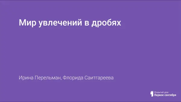 На уроке демонстрируются достижения детей в различных областях: театре, музыке, танцах, живописи и т.д. Учащимся предлагаются задачи с обыкновенными дробями, построенные на фактическом материале. На уроке звучат стихи, музыка, показываются театральные видеофрагменты, рассматриваются живописные произведения учеников.
