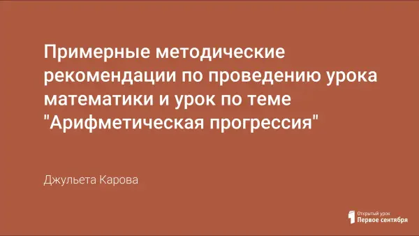 Данный материал содержит примерные методические рекомендации по проведению урока математики. Здесь рассмотрены обязательные этапы рабочего урока. Представлен план урока в 9-м классе по теме «Арифметическая прогрессия».