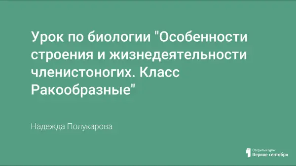 Урок по теме "Особенности строения и жизнедеятельности членистоногих. Класс Ракообразные" построен с использованием технологии личностно-ориентированного обучения. Цель урока не только познакомить с программным материалом, но и способствовать развитию интеллекта учащихся.