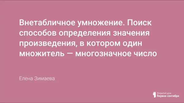 Урок разработан на основе дидактической системы общего развития Л.В. Занкова с использованием мультимедийного оборудования. На уроке учащиеся выдвигают гипотезу и делают открытие – способ умножения многозначного числа на однозначное. Уделяется большое внимание развитию логического мышления, исследовательской и творческой деятельности, рефлексии и адекватной самооценке.