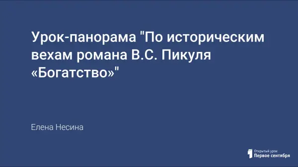 Историко-литературный урок-панорама призван помочь научить учащихся сравнивать историческую реальность и художественный вымысел в изображении исторической действительности литературными произведениями, заинтересовать в нравственных и духовных проблемах, особенностях творчества В.С. Пикуля.