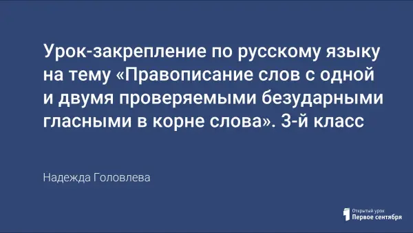 В ходе урока развивается орфографическое умение писать слова с двумя безударными гласными в корне слова. Учащиеся овладевают способами проверки двух безударных гласных в корне слова.
