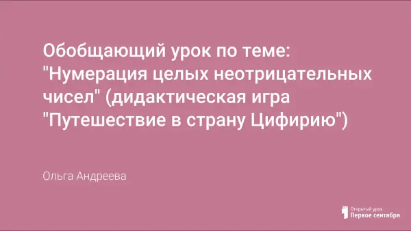 Обобщающий урок по теме: "Нумерация целых неотрицательных чисел" (дидактическая игра "Путешествие в страну Цифирию")