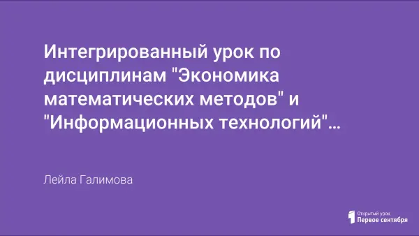Интегрированный урок позволяет студентам на практике применить ранее полученные теоретические знания. Выполняемую на уроке практическую работу можно использовать при углубленном изучении курса информатики социально-экономического профиля.