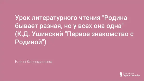Урок литературного чтения "Родина бывает разная, но у всех она одна" (К.Д. Ушинский "Первое знакомство с Родиной")