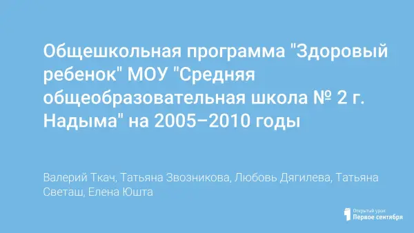 В основе программы "Здоровый ребенок" МОУ СОШ № 2 г. Надыма – реализация деятельности по формированию здоровьесберегающей среды в ОУ.