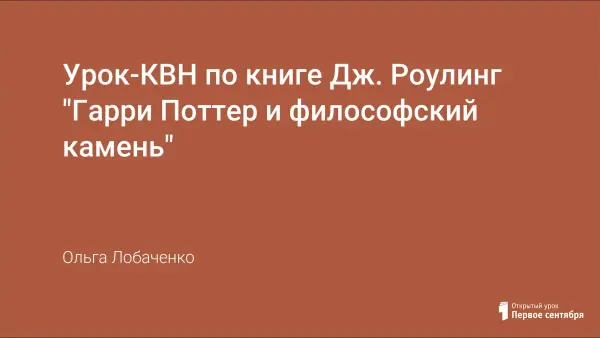Книги о Гарри Поттере – любимое чтение многих пятиклассников, и уроки по произведениям Дж. Роулинг воспринимаются ими с интересом. Задача учителя литературы – формировать внимательного читателя, показать, что ученики могут сами выбирать тексты для уроков, учить работать в группе. Форма урока КВН по первой книге о юном волшебнике даёт возможность и проверить знание текста, и оптимально выбрать материал для обсуждения, и организовать коллективную интересную работу. Задания – рассказ о себе от имени Гарри, узнавание героев и хозяев волшебных предметов, составление свидетельства об успехах – способствуют глубокому пониманию произведения.