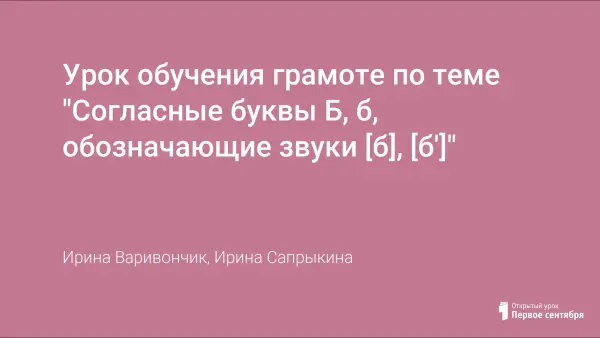 Урок обучения грамоте по теме "Согласные буквы Б, б, обозначающие звуки [б], [б']"