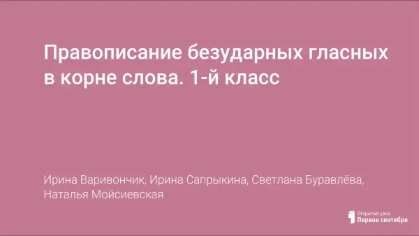 Урок русского языка в 1-м классе учит детей писать безударные гласные в словах. На уроке развивается познавательный интерес, формируется умение писать слоги, слова, предложения, обогащается словарный запас учащихся, закрепляется умение работать в парах, воспитывается уважение и любовь к природе, культура поведения. Урок ориентирован на использование ЦОР Канакиной «Русский язык. 1 класс».