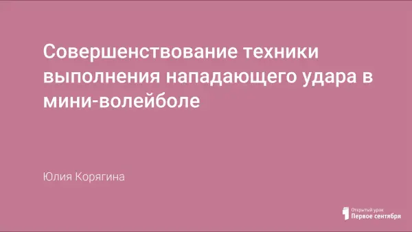 Одна из наиболее популярных игр с мячом для школьников 3–5-х классов - «Пионербол» или «Мини-волейбол», которая является подготовительной ступенькой для освоения такой технически сложной игры как волейбол. На фрагменте урока, проводимого в 5-м классе, показан алгоритм формирования навыка выполнения нападающего удара в мини-волейболе. В конце занятия проводится рефлексия, где учащиеся могут наглядно оценить свою работу на уроке, а также свой эмоциональный настрой.