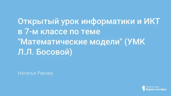 Учащиеся посредством красочной презентации знакомятся с новым видом знаковых информационных моделей и рассматривают процесс трансформации словесной модели в математическую. Особенностью урока является использование интерактивной доски и сетевых технологий.