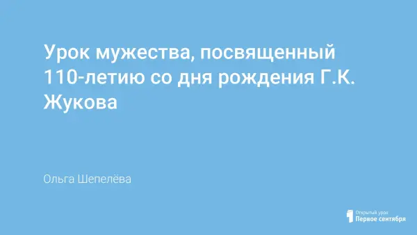 Урок с использованием мультимедиа-технологий проводится в ходе изучения темы "Великая Отечественная война 1941–1945 годов" (9, 11-й классы). Учащиеся знакомятся со вкладом великого полководца Г.К. Жукова в дело Победы над фашистской Германией.