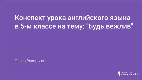 Конспект урока "Будь вежлив" для учащихся 5-х классов разработан на основе материалов учебника М.З. Биболетовой "Enjoy English". С целью воспитания у детей интереса к предмету английского языка с учетом психологических особенностей детей выбран тип урок-игра. При выполнении коллективных, групповых заданий закрепляются знания учащихся, формируются умения строить монологическую и диалогическую речь.