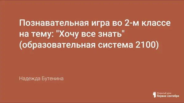 Познавательная игра во 2-м классе на тему: "Хочу все знать" (образовательная система 2100)