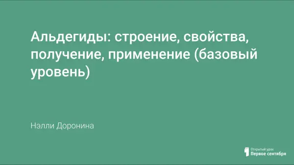 Целью урока изучения нового материала на базовом уровне по теме "Альдегиды" является формирование умений и навыков работы с учебной литературой, изучение материала с опорой на ранее полученные знания, создание условий осознания блока новой учебной информации, закрепление, применение знаний в знакомой и новой учебной ситуации.