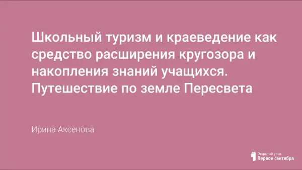 В статье показана роль школьного туризма и краеведения при воздействии на личность и коллектив, которые дают в руки педагога инструмент разностороннего воздействия на воспитанников: глубоко изучить личность каждого воспитанника. расширение кругозора и накопление знаний, формирование интереса к учебе.
