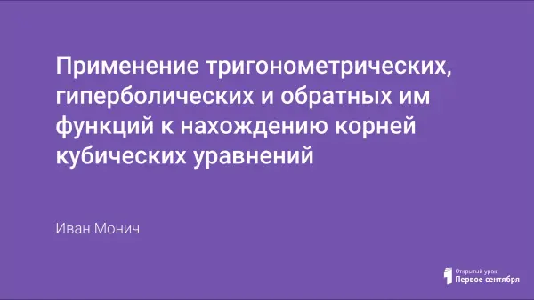 Он позволяет решить абсолютно любое кубическое уравнение благодаря известной формуле тригонометрии. Некоторые разделы теории функций комплексного переменного позволили проанализировать зависимость корней кубического уравнения от всего лишь одного числа.