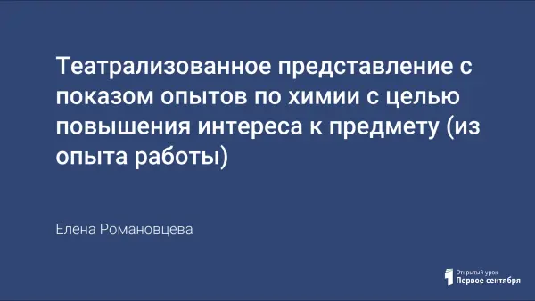 Статья посвящена нетрадиционным формам обучения химии для активизации познавательной деятельности учащихся. Приводится сценарий театрализованного представления с показом опытов и викториной. Создание сценария потребовало от учащихся углубления знаний по химии, внесло элементы исследовательской деятельности. Самостоятельный показ опытов улучшил навыки обращения с химическим оборудованием. Представление повысило интерес к предмету не только у его участников, но и у зрителей.