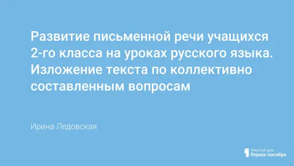 Развитие письменной речи учащихся 2-го класса на уроках русского языка с использованием компьютерных технологий. Изложение текста по коллективно составленным вопросам.