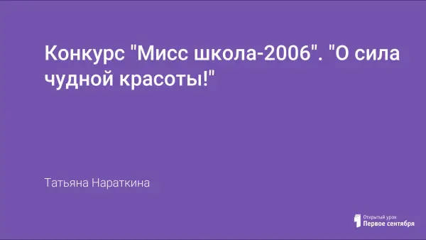 На ваш суд предлагаем сценарий праздника "О сила чудной красоты!". Сценарий праздника разработан по мифам Древней Греции (автор Н. Кун). Этот конкурс мы провели в 2005/2006 учебном году. Конкурсантки (учащиеся 8–11-х классов) предстали перед членами жюри и зрителями в образе муз из древнегреческой мифологии.