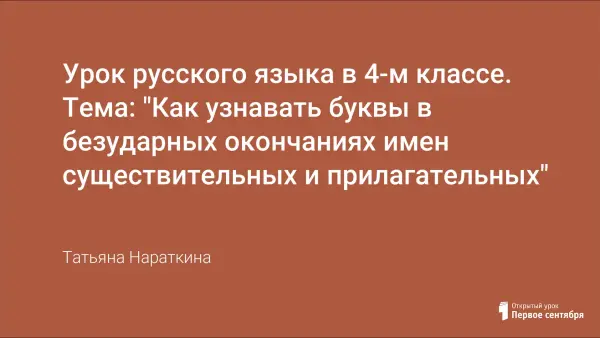 Представлен урок - закрепление изученного материала, который отрабатывает способ действия для решения орфографических задач в безударных окончаниях имен прилагательных.