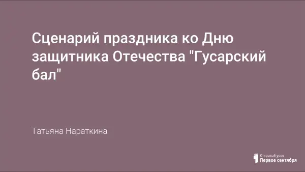 В канун дня защитника в нашей школе проходит традиционный конкурс "Мистер школы". Представлен сценарий 2008 г. "Гусарский бал". Цель мероприятия: приобщение обучающихся к военной истории, развитие интереса и уважения к историческому прошлому России, к ее традициям.