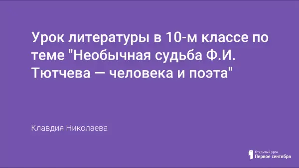 Урок знакомит с биографией Ф.И. Тютчева, выявляет особенности жизненного пути поэта, которые повлияли на характер его творчества и личность; пробуждает интерес к судьбе и творчеству поэта.