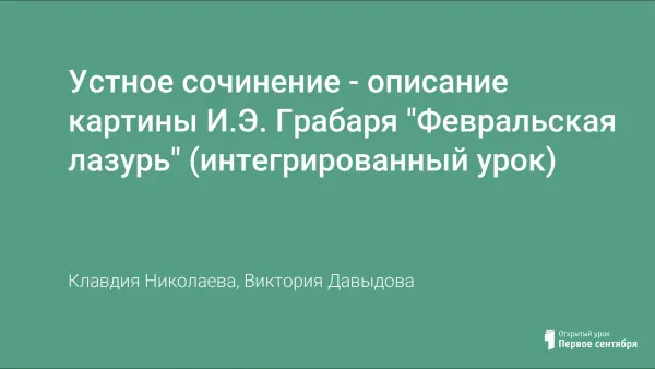 Устное сочинение - описание картины И.Э. Грабаря "Февральская лазурь" (интегрированный урок)
