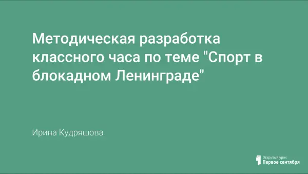 Предлагаемая методическая разработка классного часа по теме "Спортивный подвиг блокадного Ленинграда" направлена на решение сразу двух задач – патриотического воспитания школьников и формирования здорового образа жизни путем приобщения детей к истории спортивного движения в России, и в Санкт-Петербурге в частности.