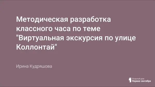 Методическая разработка – опыт создания и проведения виртуальной экскурсии по улице Коллонтай Невского района Санкт-Петербурга. Данная форма работы предоставляет широкие возможности для развития творческих способностей детей: от самостоятельной исследовательской работы до создания видео- и фотоматериалов, оформленных в виде презентации в программе PowerPoint.