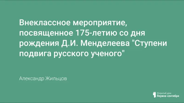 Внеклассное мероприятие «Ступени подвига русского ученого», посвященное дню рождения Д.И.Менделеева, является ознакомлением учащихся с жизнью и деятельностью Дмитрия Ивановича Менделеева.