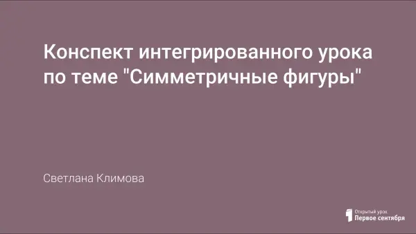 Интегрированный урок по теме "Симметричные фигуры" объединяет темы курсов математики, изобразительного искусства, трудового обучения. Способствует формированию целостного представления о симметричных фигурах благодаря теоретическому знакомству с признаками этих фигур и практическим действиям с ними (складывание, построение, вырезание, рисование).